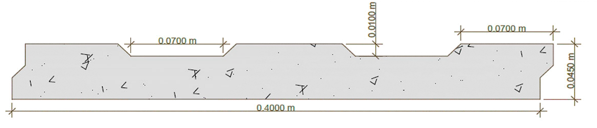 | Panel | Altura: 40 cm; Espesor: 4.5 cm; Largo: Variable | fck=350 kg/cm² | fyk= 18.000 kg/cm² | 115 - 130 kg. | Longitud Comercial 2,50 mts, 3.00 mts |